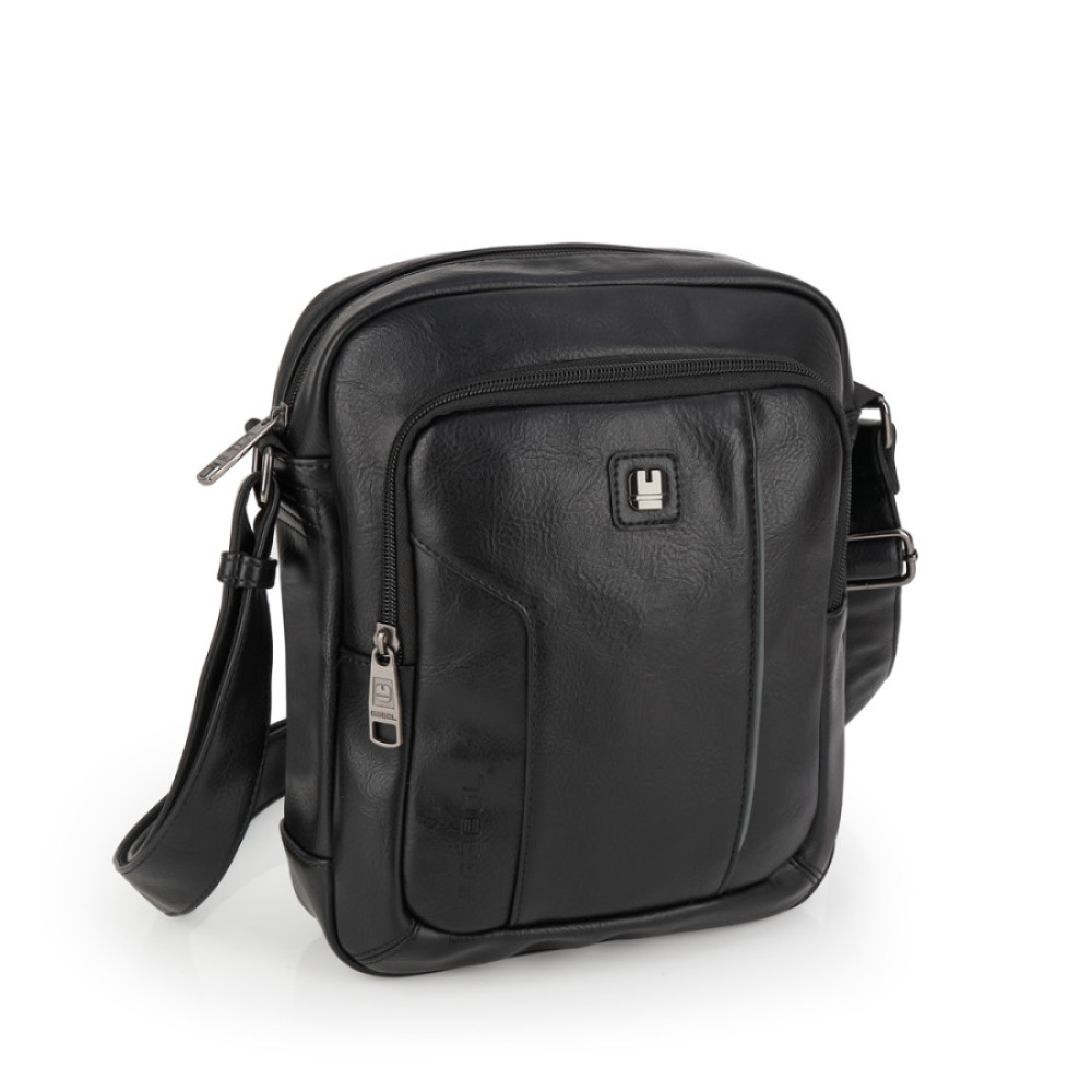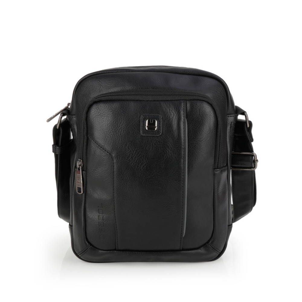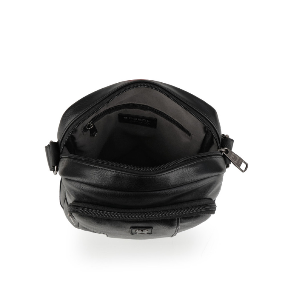 Bandolera de piel sintética, negro. Fabricado con materiales libres de PVC. Medidas: 20x25x8 cm