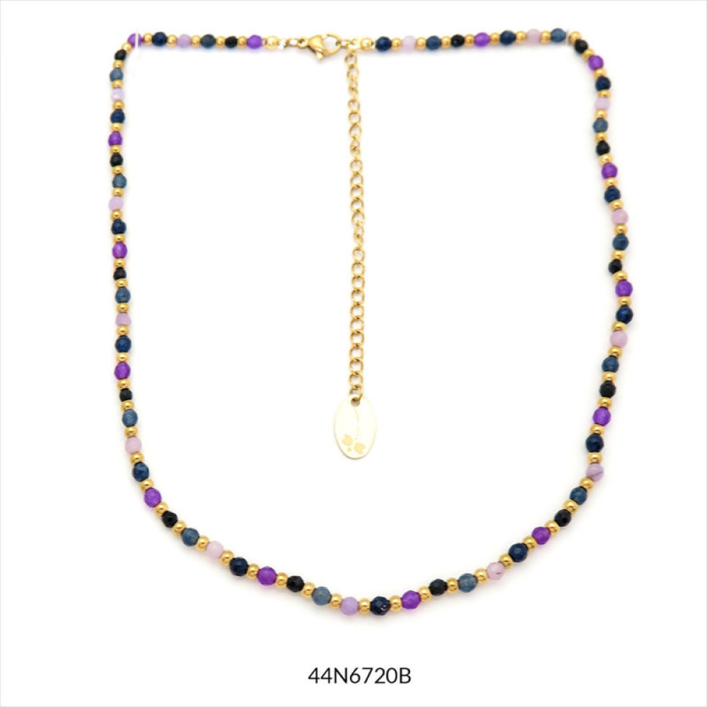 Acero inoxidable con baño de oro de 18K. Piedras semipreciosas: Jade . Hipoalergénicos. 40 cm de largo. Cadena de extensión de 8 cm de largo.