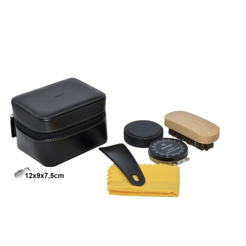 CONTIENE: CEPILLO, CREMA NEGRA, CALZADOR, ESPONJA ABRILLANTADORA Y PAÑO DE MICROFIBRA.