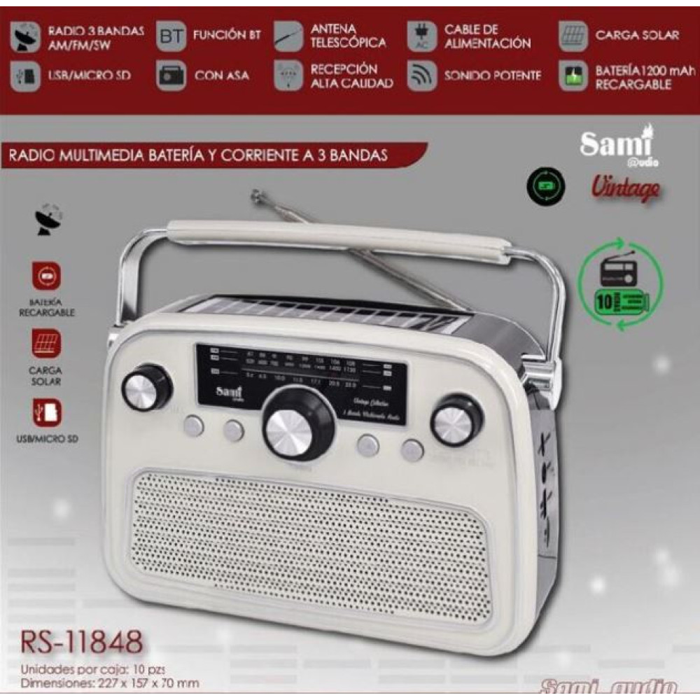 Radio Multimedia Batería y Corriente a 3 Bandas