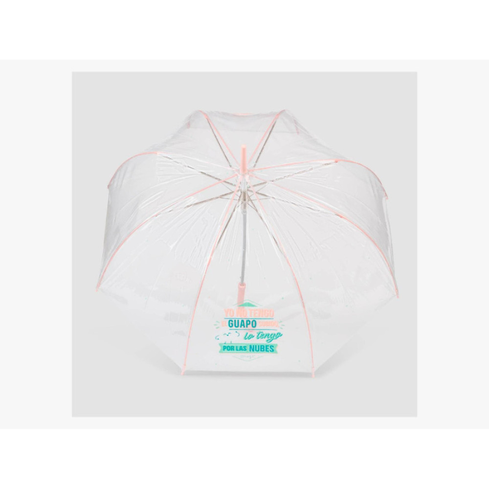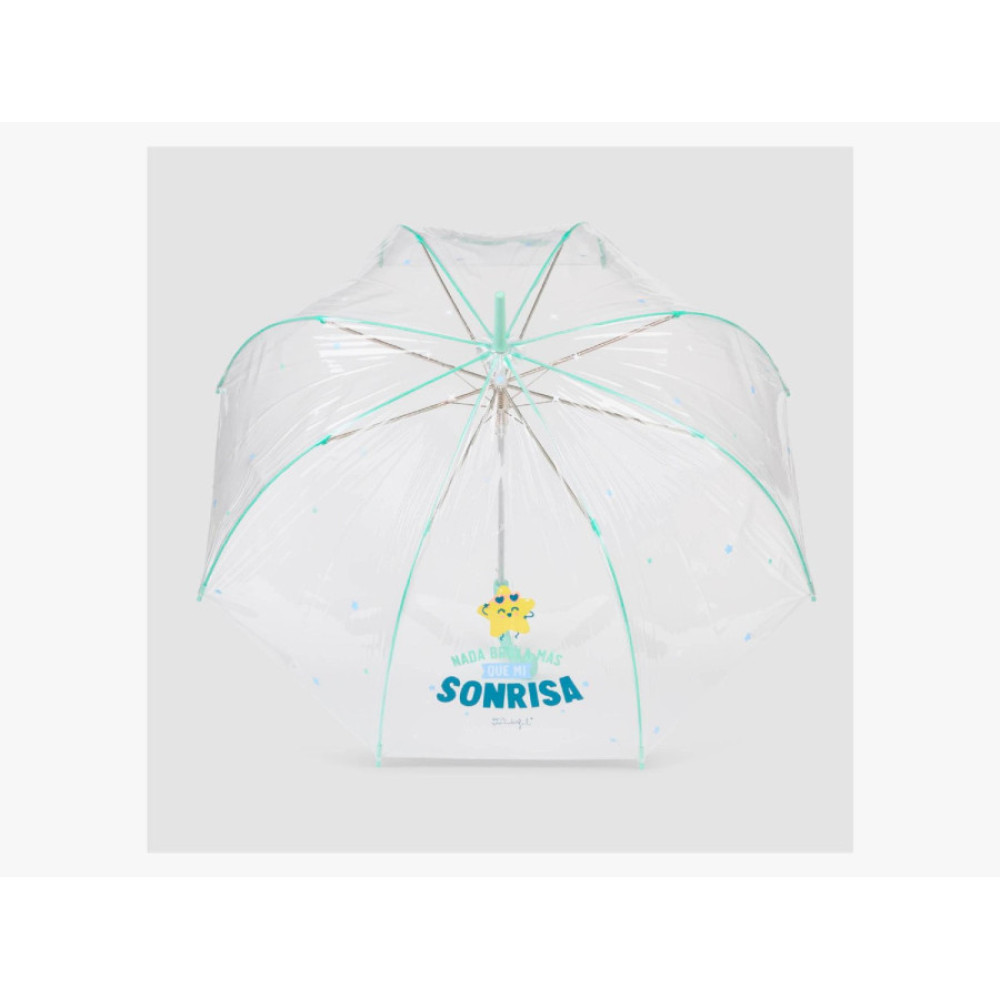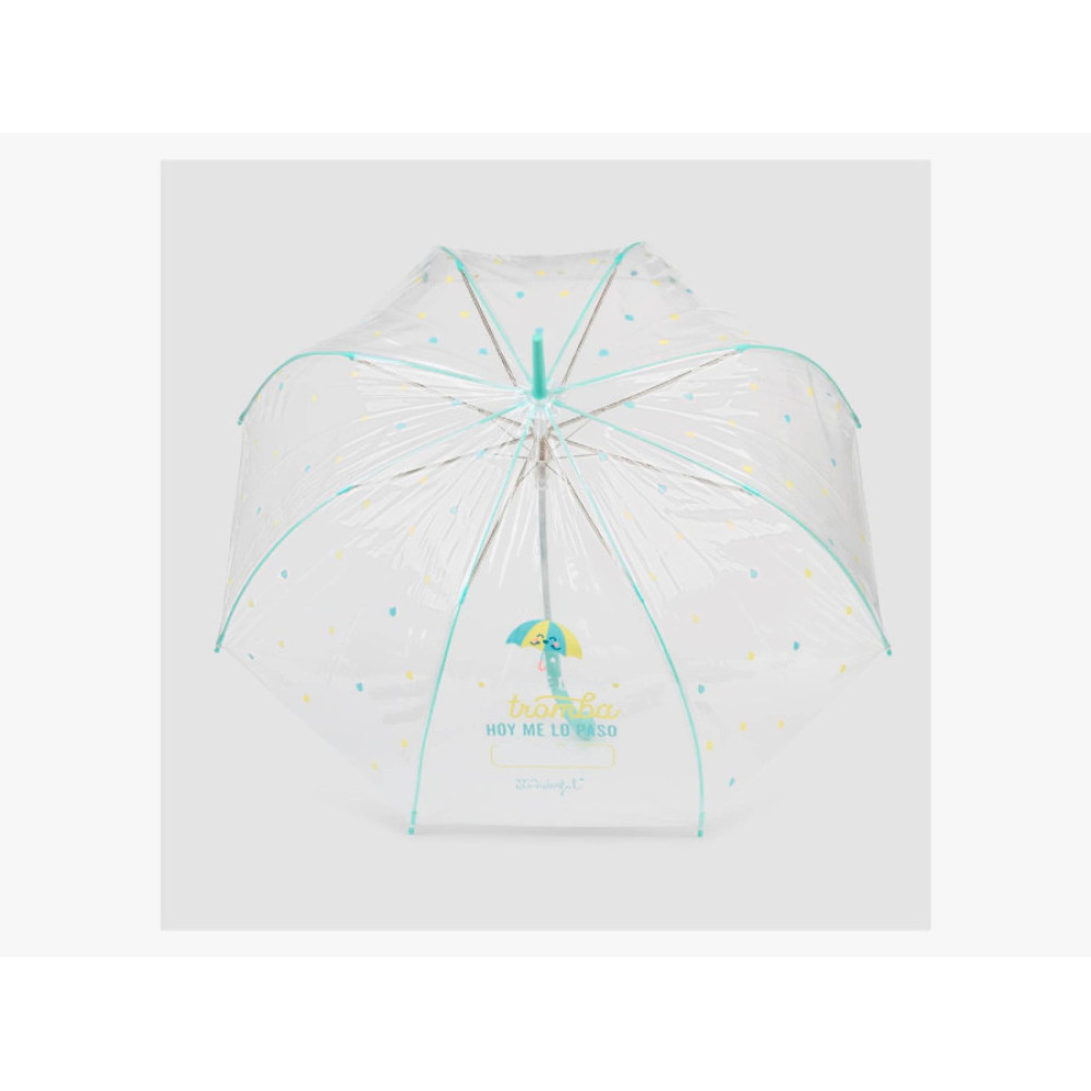 Descubre nuestro paraguas transparente automático con frases de la colaboración entre Mr. Wonderful y Clima. Con un diseño femenino en tonos rosa, verde claro y verde, este paraguas automático te protegerá de la lluvia con estilo. Su apertura automática te brinda comodidad y su material transparente te permite ver a través de él. ¡Lleva contigo un toque divertido y original en los días de lluvia con este encantador paraguas!