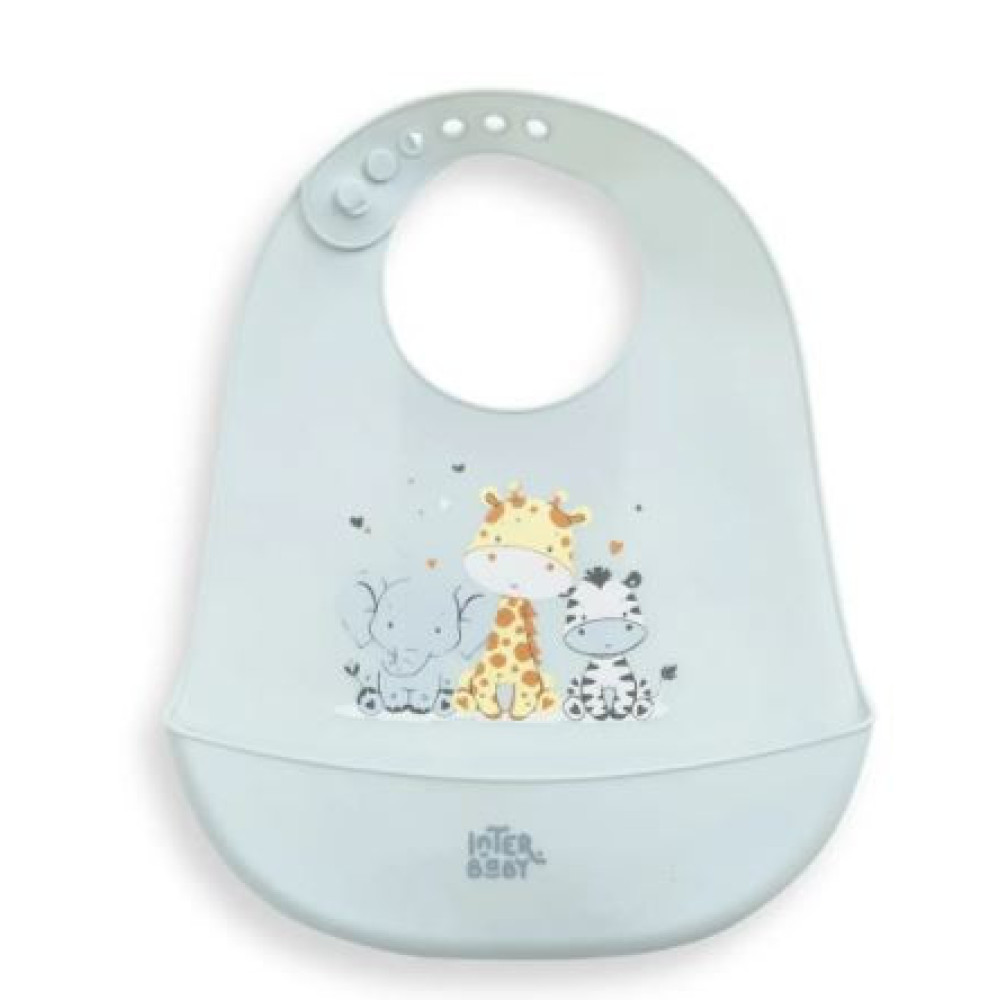 BABERO SILICONA ESTAMPADO TRES AMIGOS GRIS PETROLEO INTERBABY