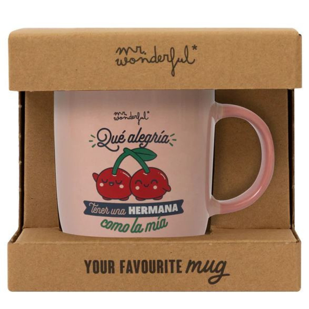 Recuérdale a tu hermana lo especial que es y cuantísimo la quieres regalándole esta bonita taza Mr. Wonderful.