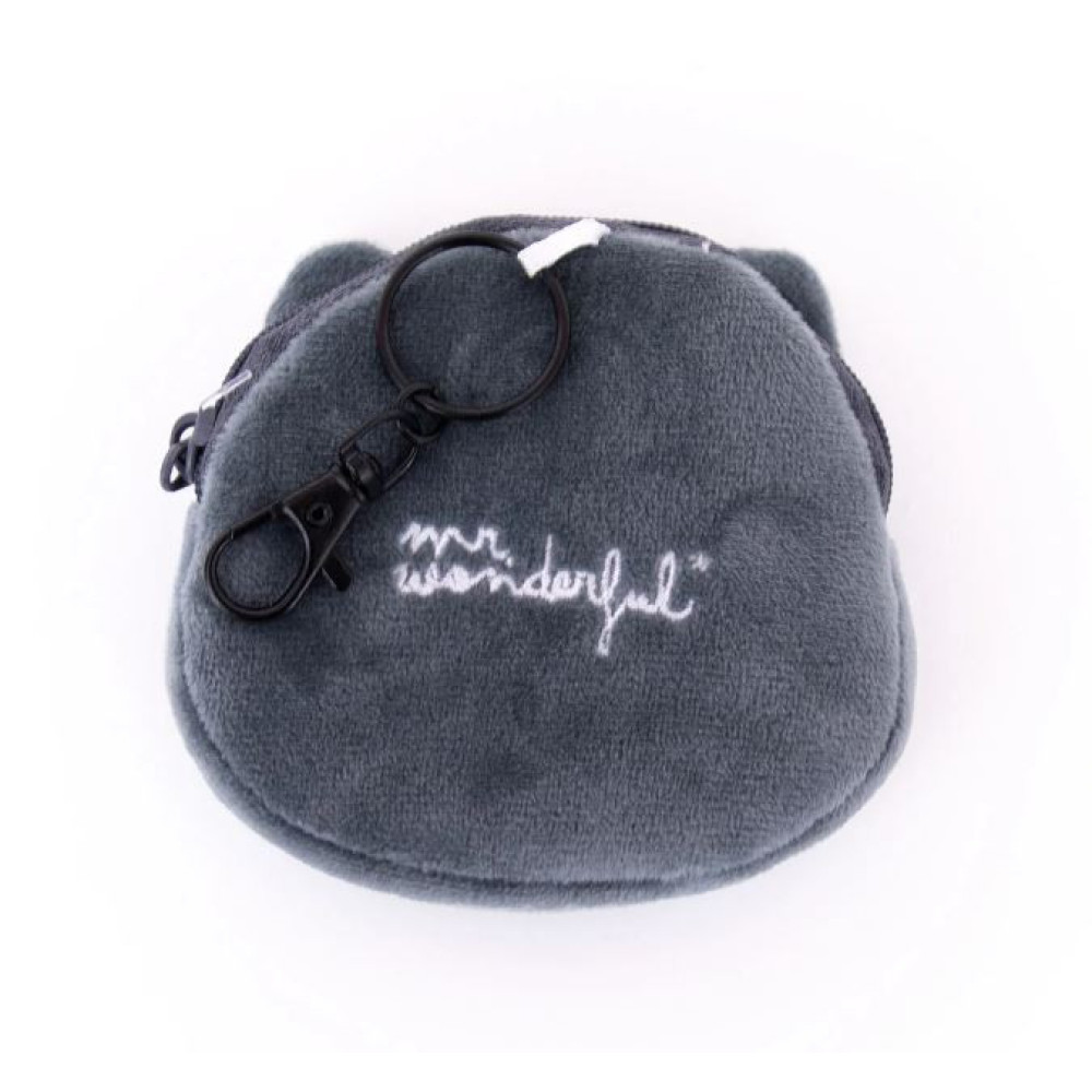 Pequeño monedero realizado en poliéster, de peluche, con forma de un divertido personaje Mr. Wonderful y con cierre de cremallera. Lleva cosida una cadena y arandela metálicas, lo que lo convierte a su vez en un práctico llavero.