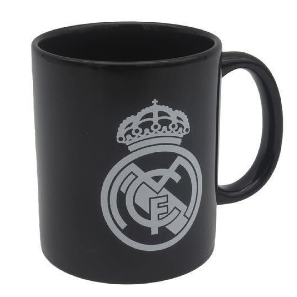 REAL MADRID TAZA CERÁMICA NEGRA CON ESCUDO BLANCO EN CAJA