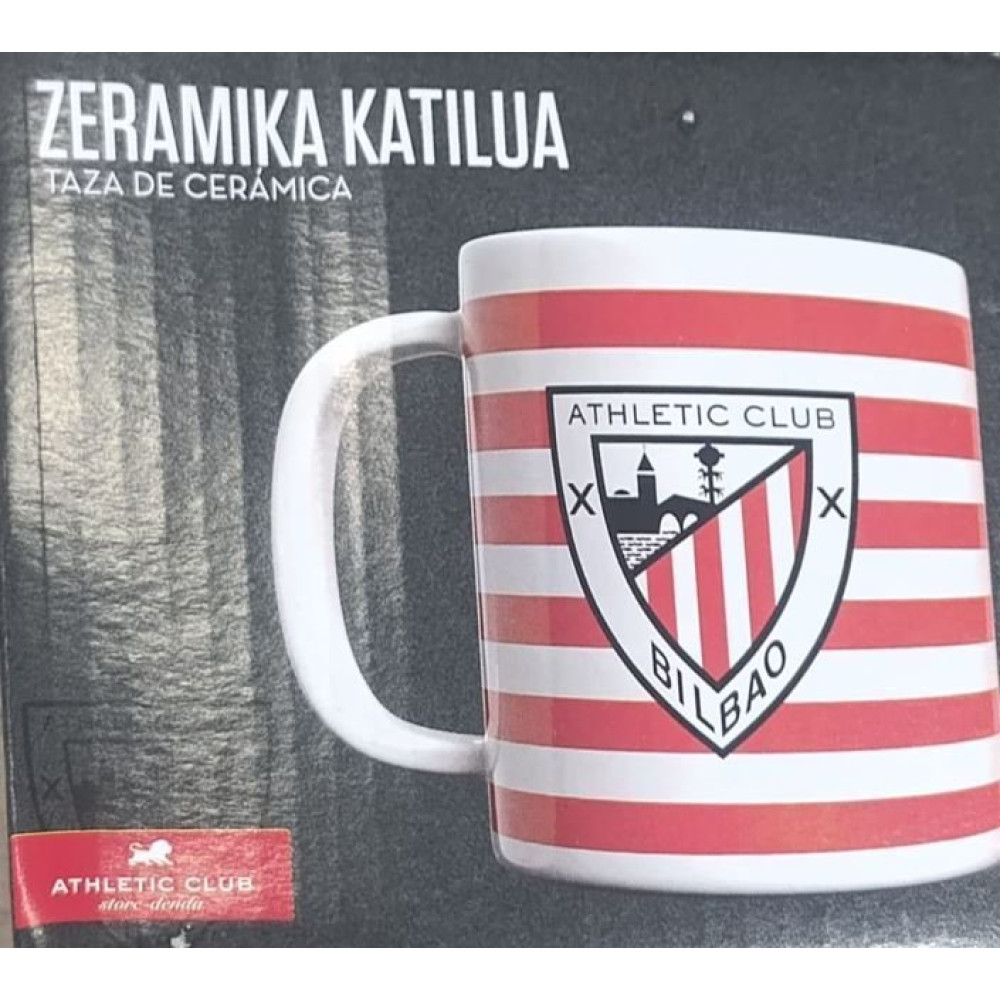 ATHLETIC BILBAO TAZA CERÁMICA CON RAYAS Y ESCUDO CON CAJA REGALO