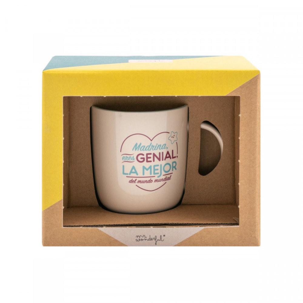 Es la madrina mágica la que se encarga de sacarte de cualquier apuro, la que aparece de vez en cuando con sorpresas que no te esperabas y la que te hace los postres más deliciosos. No podrías tener una madrina que se preocupara más por ti y que te quisiera tanto como lo hace ella. A las personas que tenemos a nuestro alrededor hay que cuidarlas tan bien como lo hacen ellas de nosotros, y por eso en Mr. Wonderful hemos creado esta taza para madrinas ideal para regalar a tu madrina favorita, la mejor del mundo mundial.